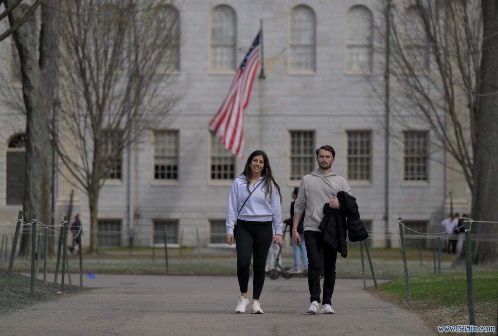4月15日,人们漫步在美国马萨诸塞州剑桥市的哈佛大学校园内。新华社/路透