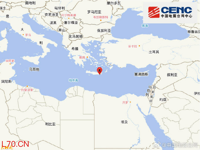 地中海东部发生5.7级地震 震源深度10千米