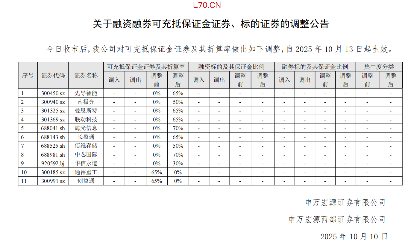 两券商将中芯国际等股票两融折算率从0%调回70%
