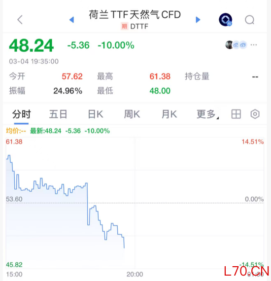 欧洲天然气价格跌10%。