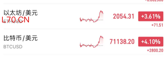 比特币跃升至近72000美元,反映出市场部分风险偏好正在回归。