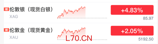 黄金白银上涨。