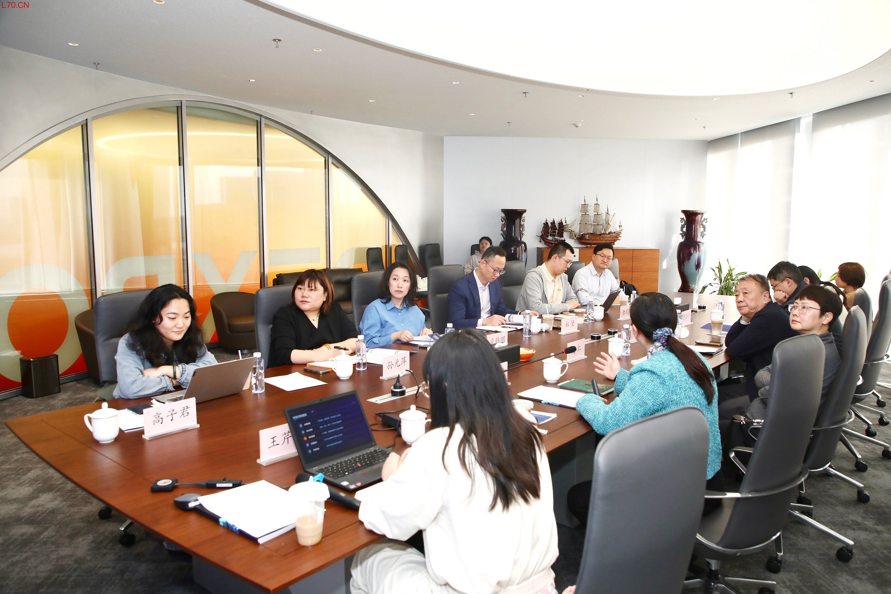 上海第一财经传媒有限公司常务副总经理杜坚、东浩兰生会展集团副总裁裘皓明带领各自公司专业团队出席会议,为图谱的高质量交付及切实服务产业落地出谋建言。